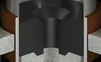 平坦なポールピースから生じる不必要な音の反射を排除します。
