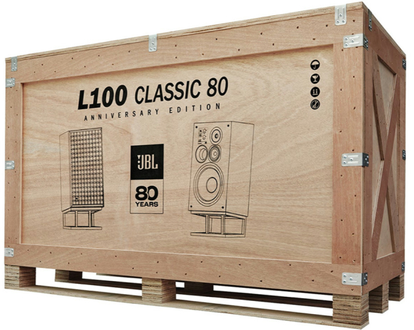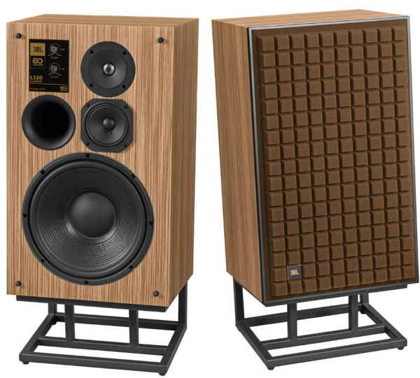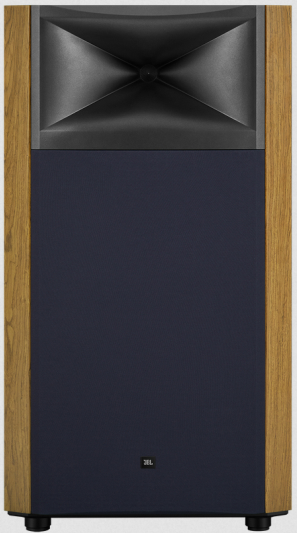 グリルに取り付けられたJBLロゴバッジにはスピーカーの縦横設置に合わせて
