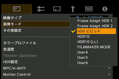 V900R、V800Rモデルは 最新ファームウェア・アップデートにより HDR映像を最適化する「Frame Adapt HDR」機能に、 新たな画質モード「Frame Adapt HDR ビビッド」が追加。