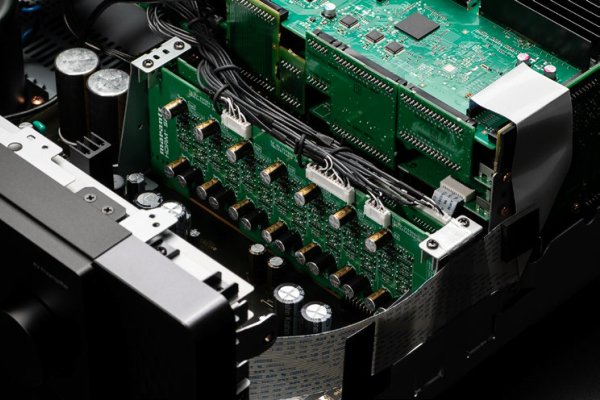 Marantzr 16ch パワーアンプ 「AMP10」 パーツの品種や定数だけに止まらず、 回路構成までも 独自にカスタマイズした 専用設計の マランツオリジナルの Class Dパワーアンプモジュール パワーアンプ回路は2chごとに モジュール化されており、 すべてのモジュールが同一構成、 同一クオリティとなっています。 そのためチャンネルごとの音色、 特性のばらつきがなく、 シームレスで立体的なサラウンド空間を 美しく描き出すことができます。 中高域と低域を個別に駆動する バイアンプドライブと 400W(8Ω)のハイパワーを出力可能な BTL接続に対応 定格出力 ノーマル./バイアンプ: 200 W x 2(8 Ω、1 kHz、T.H.D. 0.05 %) 400 W x 2(4 Ω、1 kHz、T.H.D. 0.7 %) BTL: 400W x 2(負荷8Ω、1kHz、T.H.D. 0.05 %) ハイスピード、ハイパワー、ハイクオリティを 兼ね備えた電源回路 Class Dアンプ回路と、小信号を扱う入力段の それぞれに専用の電源回路を用意 HDAM-SA2インプットバッファー回路 ハイスルーレートで低ノイズ、 そして安定した機器間、回路間の信号伝送を実現 バランス&アンバランス入力端子 プリアンプとの接続に使用する ケーブルに合わせて 切り替えられるXLR&RCA入力端子 ハイクオリティな真鍮削り出しスピーカー端子 高い品質を誇る、日本の白河工場生産品 |