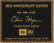 グリルに取り付けられたJBLロゴバッジにはスピーカーの縦横設置に合わせて